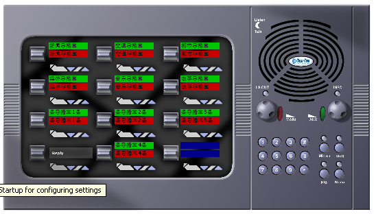 此面板上有11個可以上下?lián)軇拥目刂奇I和相應的信息顯示屏(顯示不同的導播室名稱和總控室名稱),一個REPLY回復鍵和相應的信息顯示屏,一個揚聲器,音量增益調(diào)節(jié)旋鈕,撥號盤和一些功能鍵組成。如果你要進行通話,就找到顯示屏上顯示的目的地的控制開關(guān)(如新聞導播室),往下?lián)軇右幌驴刂奇I,這時顯示屏下方的狀態(tài)燈變成高亮度的紅色,說明你選擇的目的地新聞導播室已經(jīng)聯(lián)通,你可以對著話筒進行通話。通話完畢,必須要往下?lián)軇右幌聞偛庞眠^的開關(guān)來斷線,不然會一直占用線路,其他人呼叫不到你。