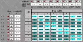 參量型矩陣的節(jié)點,除了“on”與“off”的功能外,還可以進行對該節(jié)點的輸出音量值調(diào)整。調(diào)整單位通常為“dB”(分貝)。即可以調(diào)整每個輸入信號分配到指定輸出端口的數(shù)值。