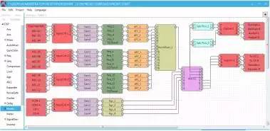 另外一類架構(gòu)是可以對每一個模塊進行自由編輯的產(chǎn)品。通常稱之為動態(tài)編譯架構(gòu)。優(yōu)點是給予工程師的自由度極其高,沒有任何限制。甚至有的工程師將音頻矩陣中的邏輯功能發(fā)揮到極致后,完全取代了中控主機的功能。