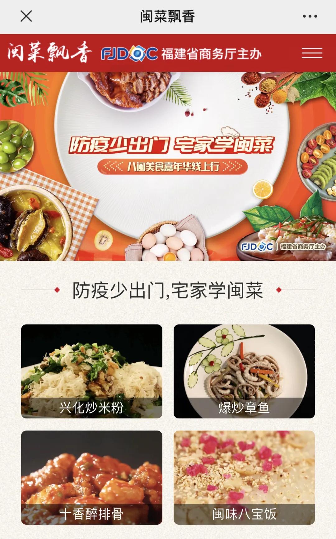 2019年12月以來(lái),福建省“八閩美食嘉年華”活動(dòng)受到了廣大群眾的歡迎。防疫期間,為滿足用戶需要,省商務(wù)廳聯(lián)合福建廣電網(wǎng)絡(luò)集團(tuán)在福建高清互動(dòng)云電視開(kāi)設(shè)了“防疫少出門(mén)、宅家學(xué)閩菜”主題電視專(zhuān)區(qū)。專(zhuān)區(qū)以閩菜20道精選、100道福建名小吃為重點(diǎn),以視頻點(diǎn)播、圖文介紹、教學(xué)互動(dòng)等形式,全方位、多角度展示閩菜飲食文化,讓全省觀眾在家就能跟著名廚學(xué)閩菜,暢享“八閩美食嘉年華”。專(zhuān)區(qū)覆蓋全省數(shù)百萬(wàn)廣電互動(dòng)電視用戶,成為福建省群眾居家最為便捷和完善的閩菜宣傳和商務(wù)服務(wù)平臺(tái)。
