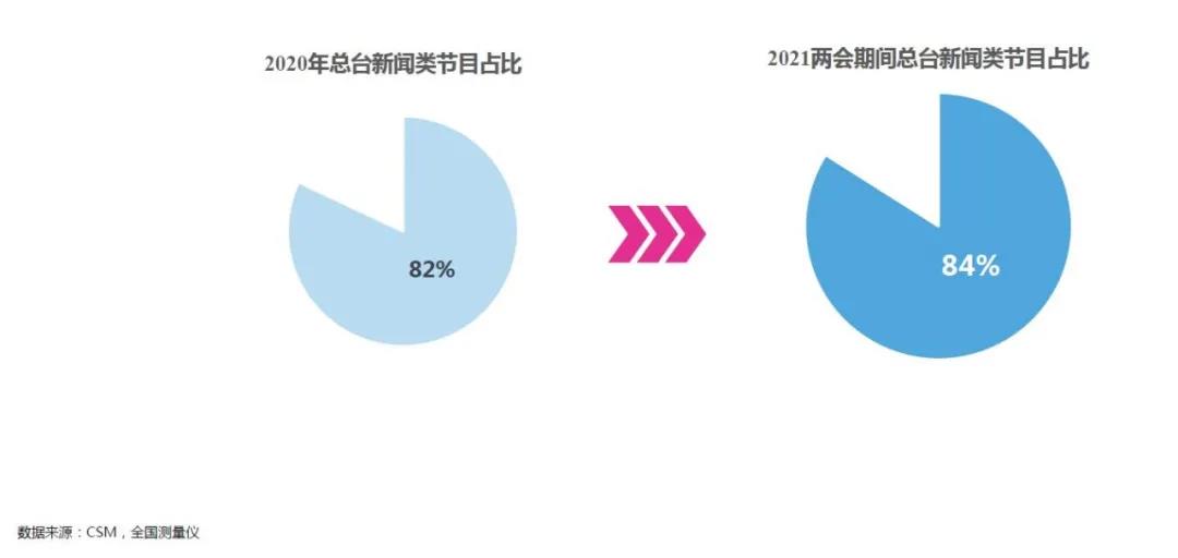 2021年3月4日至3月7日,總臺新聞節(jié)目市場占有率達(dá)到84%,較去年的82%進(jìn)一步提升兩個(gè)百分點(diǎn)。