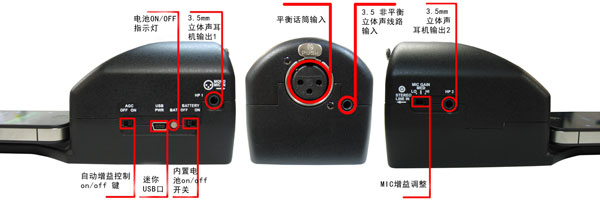 3)插入話筒,戴上耳機(jī), 就可以在線傳輸15K 音頻信號; 或者通過iphone觸摸屏操作按鍵錄音;用FTP傳輸錄音信號。