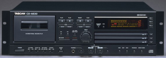 在了TASCAM的CD - A630結(jié)合了三碟CD轉(zhuǎn)換器和自動磁帶甲板上扭轉(zhuǎn)在一個機(jī)架安裝機(jī)箱,提供一個簡單易用,經(jīng)濟(jì)的和空間效率解決方案,為小型擴(kuò)音播放系統(tǒng)和商業(yè)設(shè)施,如餐館和訓(xùn)練室。