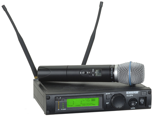 單通道無線話筒:包括ULXS4雙天線接收機(jī),UL×2/BETA87C手持發(fā)射機(jī),