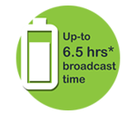 VIA帶有一個可再充智能鋰電池,可以提供高達6個半小時*的廣播時間。延長電池使用時間,可通過以下措施:屏幕休眠時間,屏幕亮度控制,自動低電池節(jié)電。