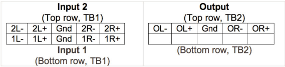 1. 將信號源(主/主)設(shè)備(控制臺,自動化設(shè)備等)連接到左聲道的1L-和1L +,右聲道的1R-和1R +。