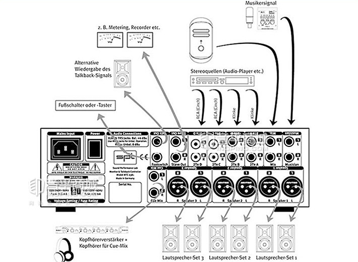 MTC 2381讓你擁有與大型混音臺一樣的監(jiān)聽控制和聲源切換感覺,包括對講功能。另外它還特意設計了“musician”樂手輸入通道,可以讓樂手直接監(jiān)聽到從話放輸出的直接錄音的聲音,而不必去監(jiān)聽從電腦軟件輸出的聲音,這意味著樂手的監(jiān)聽不會有任何的延遲。