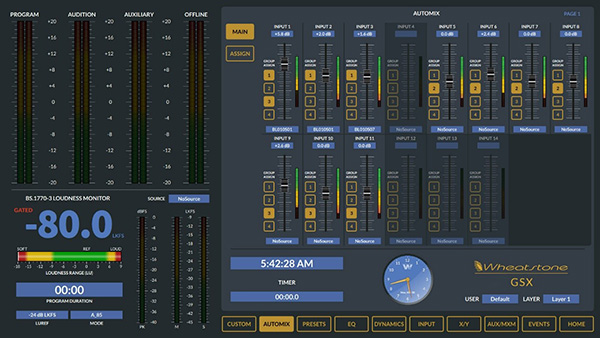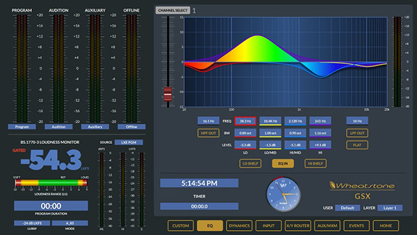 GSX無縫連接到WheatNet-IP智能網(wǎng)絡(luò),并利用BLADE在單根CAT6互連電纜上傳輸音頻,控制和相關(guān)邏輯數(shù)據(jù)。該系統(tǒng)幾乎可以提取和轉(zhuǎn)換所有音頻格式:麥克風(fēng)和線路電平模擬,AES / EBU,SPDIF,AoIP,MADI,SDI甚至是AES67。包括響度測量,相位控制和完整的EQ / Dynamics。