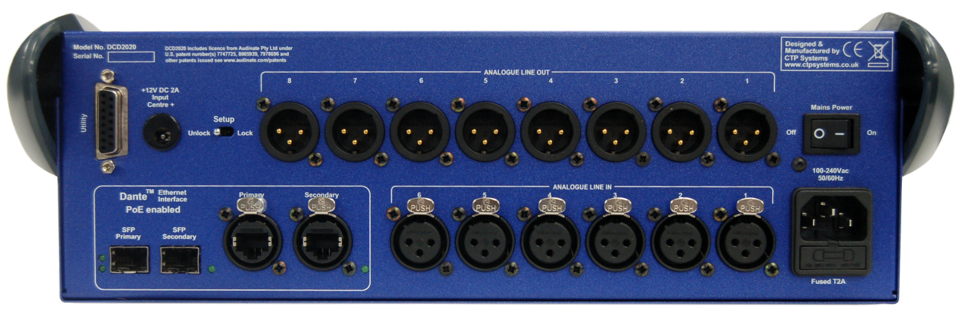 通過(guò)設(shè)備背面的XLR可提供6個(gè)模擬輸入和8個(gè)模擬輸出,所有這些都可通過(guò)網(wǎng)絡(luò)訪問(wèn)。 這些突破沒(méi)有固定功能,可根據(jù)需要用于外部設(shè)施。 它們還可用于向/從評(píng)論框提供模擬輸入和輸出。 例如,如果評(píng)論員A模擬格式本地需要麥克風(fēng),只需在Dante控制器上選擇Prog Out Com A交叉點(diǎn)到模擬線路輸出1。 使用模擬突破可以將DCD2020用作基本上模擬的單元,但是它仍然需要某種形式的網(wǎng)絡(luò)連接。